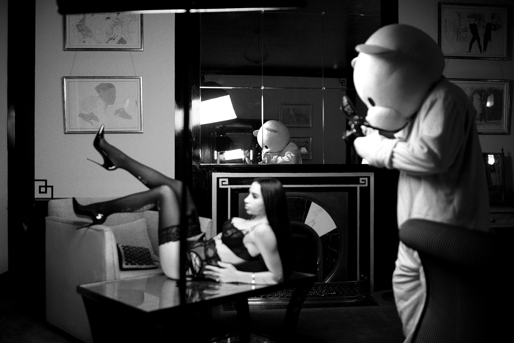 LUAP’s series of paintings and photographs “Bed Time Stories” are set in the intimate yet unfamiliar surroundings of hotel bedrooms. They are presented to us through popular cultures sexualised gaze as bizarre dream like hallucinations.