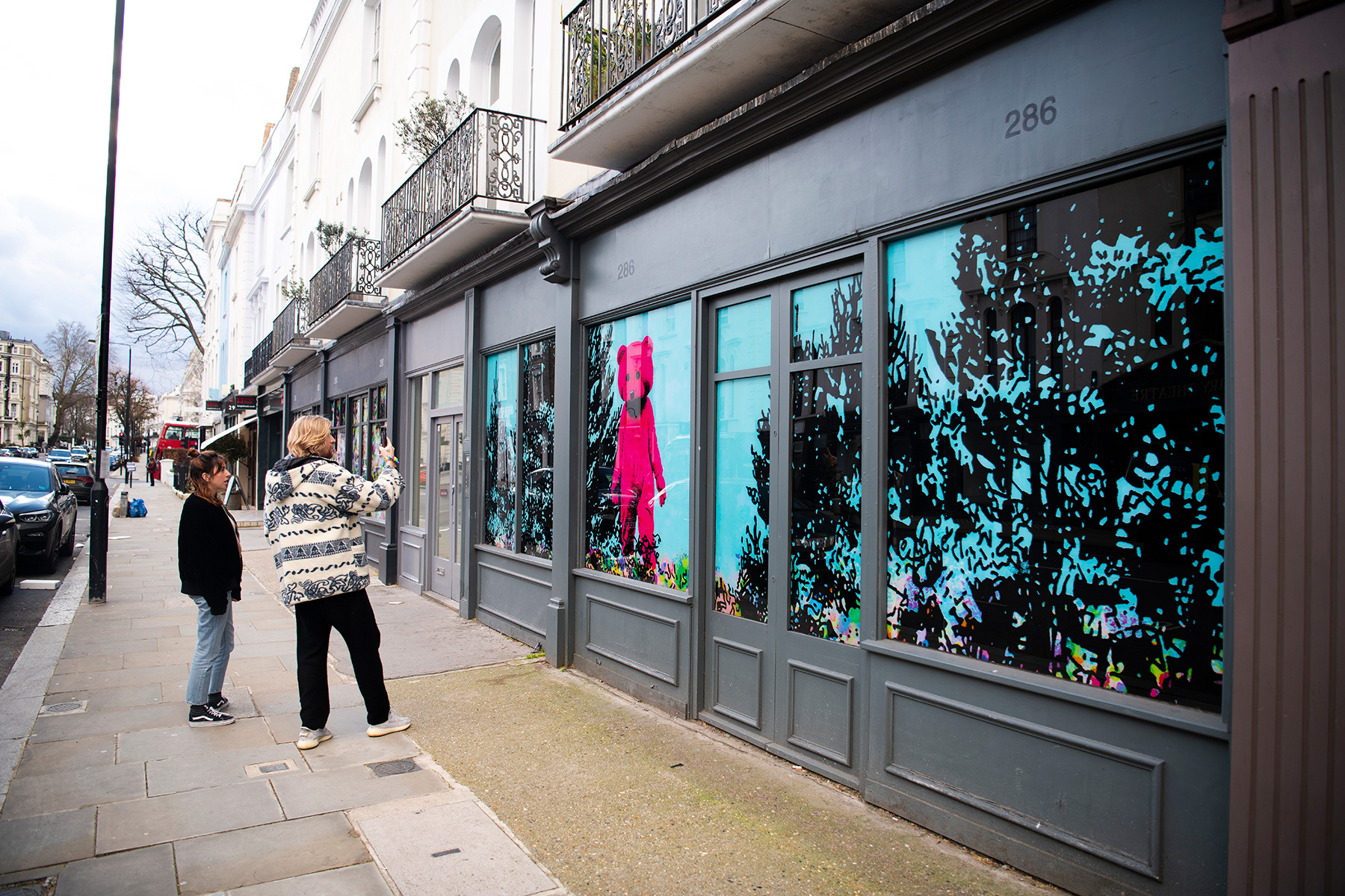 The project features site-specific window installations across Kensington, activating local high streets through imaginative interventions by contemporary artists. Taking over vacant store windows, 'High Street Windows' aims to showcase artists’ practices and engage visitors to the High Street, in a visual celebration of culture and creativity, turning vacant spaces into pop-up contemporary artworks.