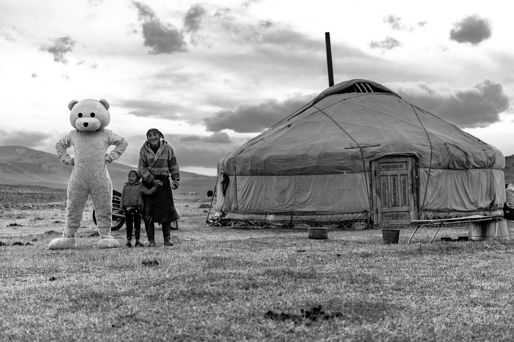 In my most recent adventure, I embarked on a journey across Mongolia that spanned 10 days, all on horseback, with the sole purpose of capturing new photographic artworks featuring The Pink Bear. This remote and uninhabited landscape, steeped in tradition yet facing the encroachment of modernity, served as the perfect backdrop for my mission.