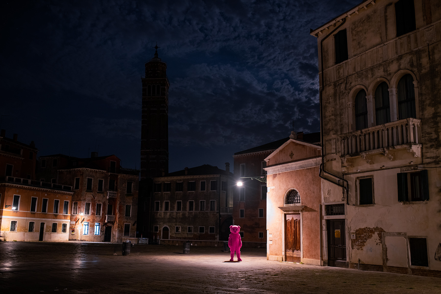 Read more about 'Pink Bear Is Coming To Town' Venice By Moonlight Pink Bear Is Coming To Town, 2018, C-Type Print, 60cm x 40cm, Photography Pink Bear Is Coming To Town View 'Pink Bear Is Coming To Town' series
