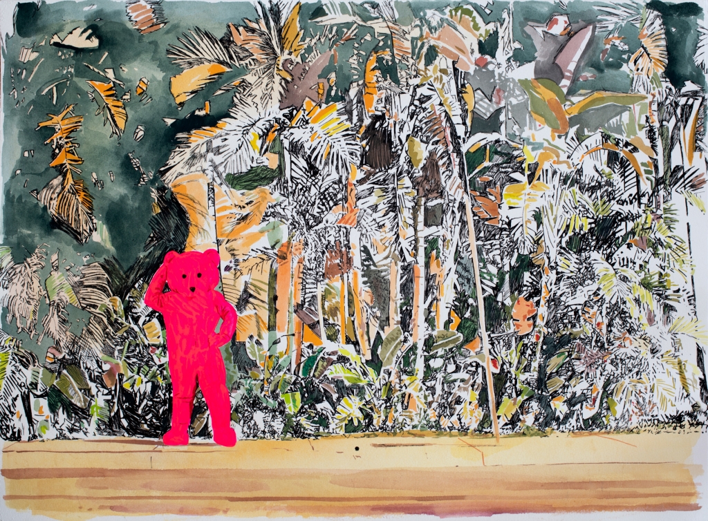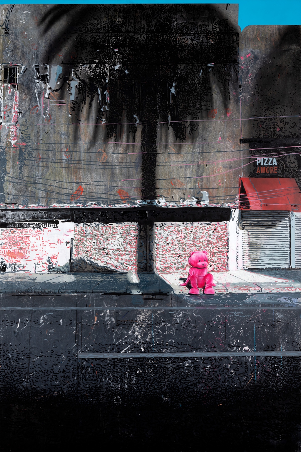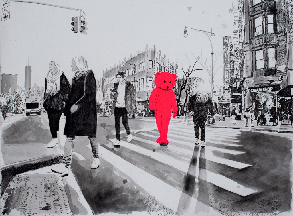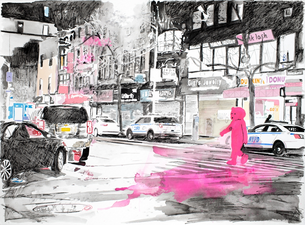 Pink Bear - New York - Acyrlic & Paper collage on Bockingford 300 gsm paper