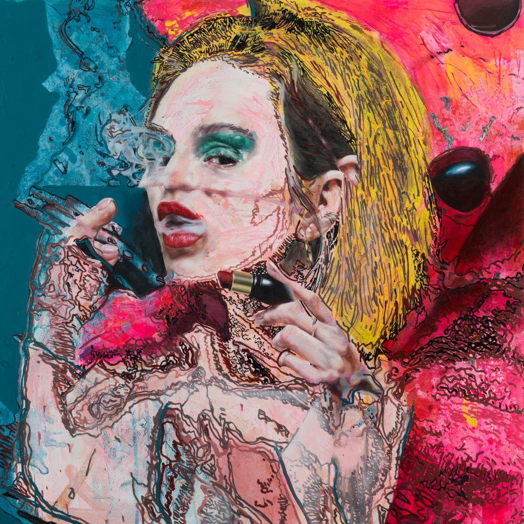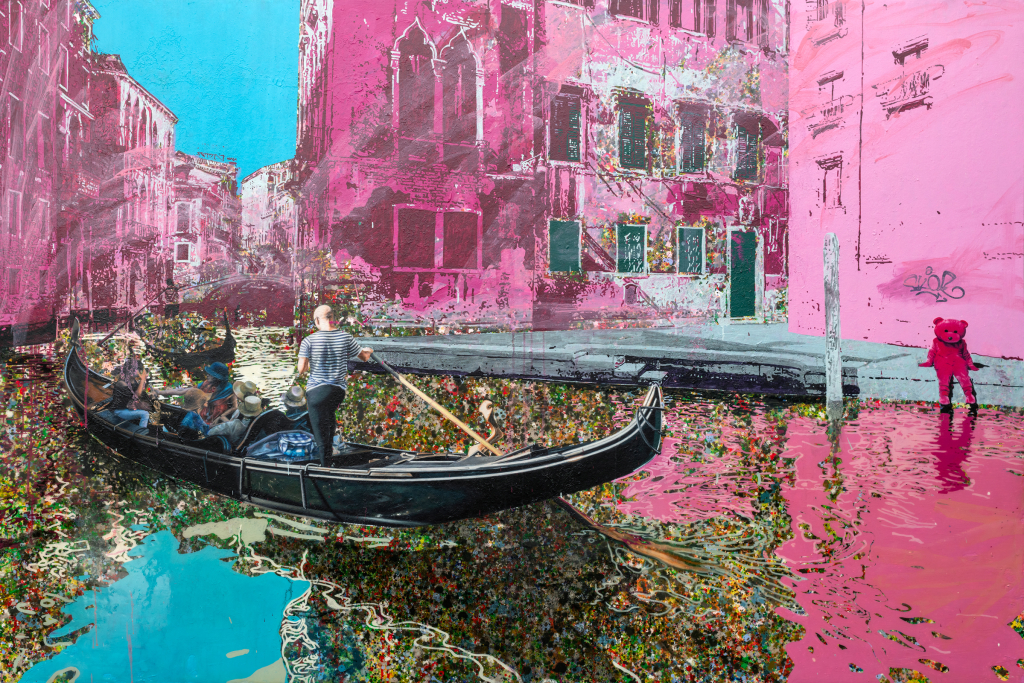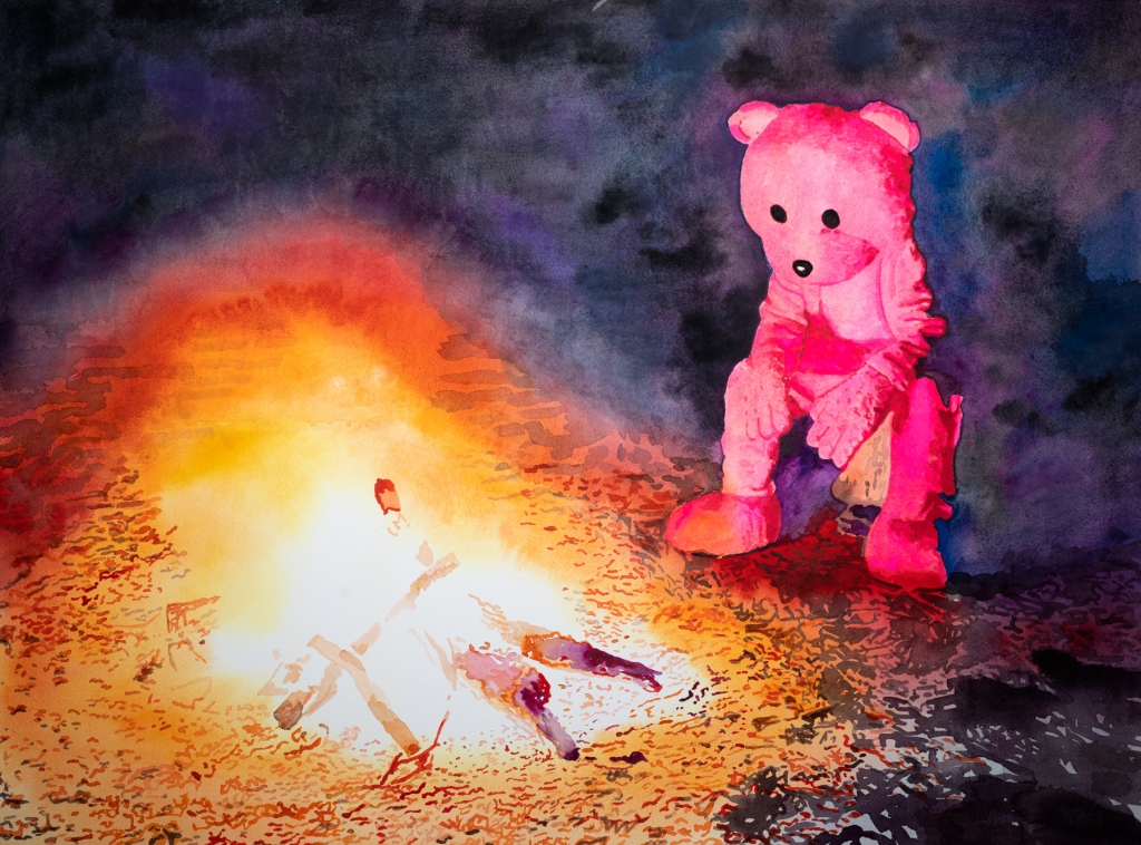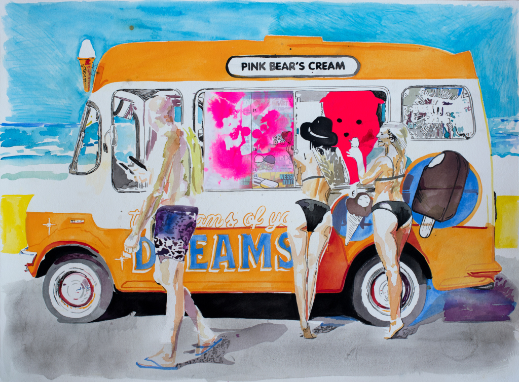Pink Bear - New York - Acyrlic & Paper collage on Bockingford 300 gsm paper