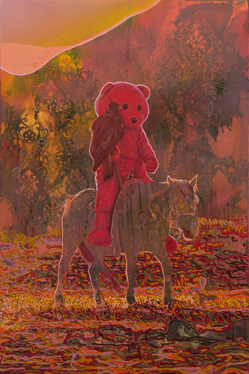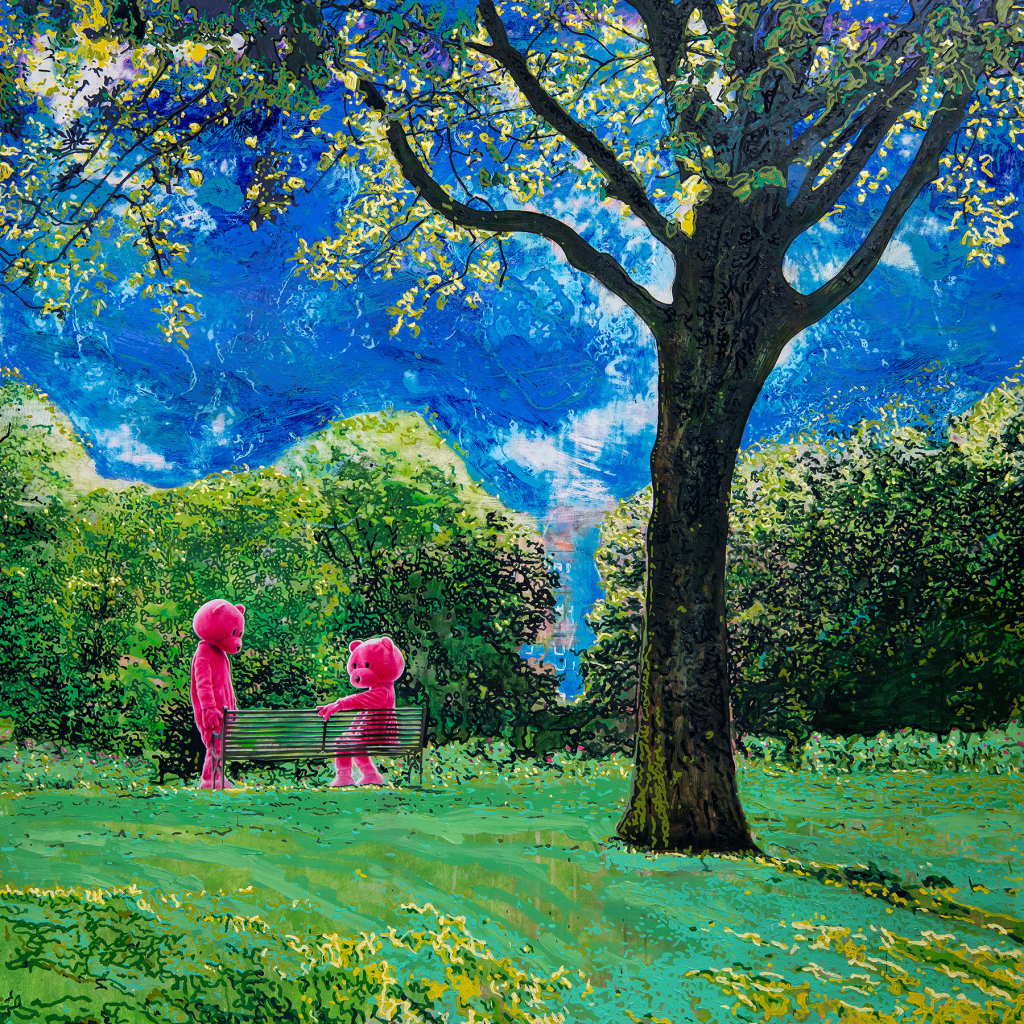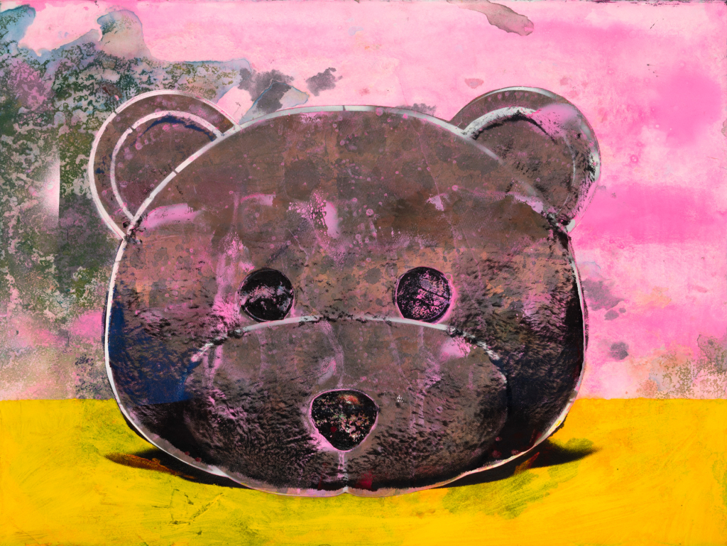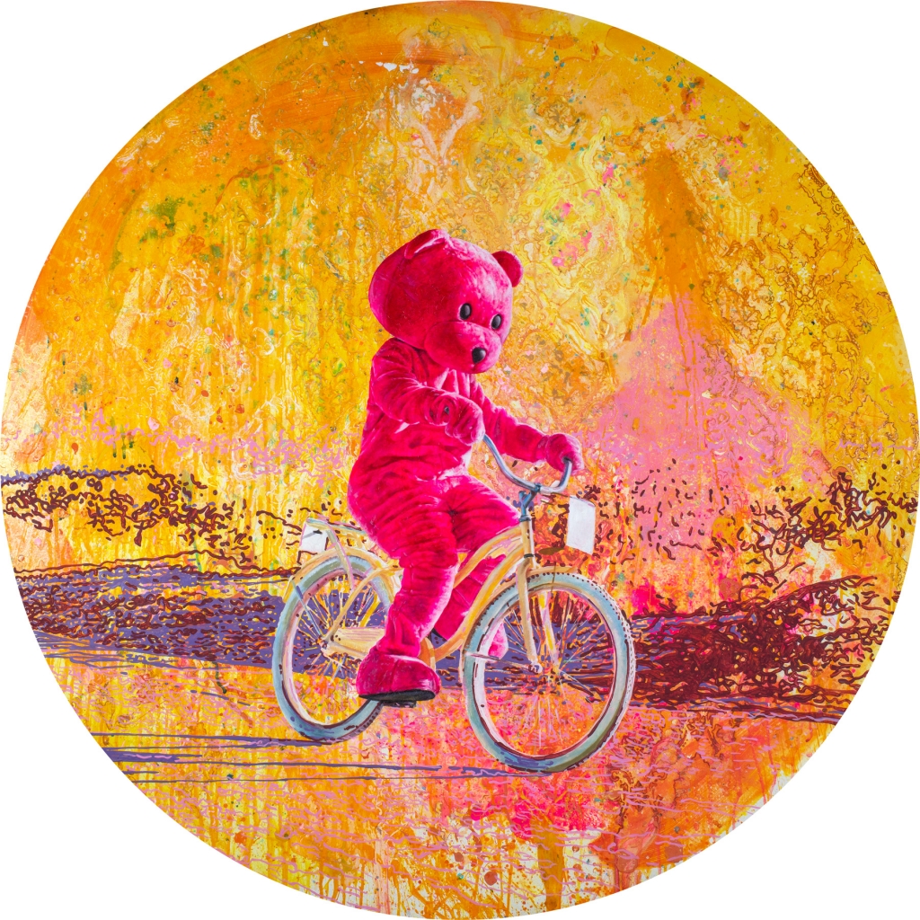 The Apple Tree - Pink Bear mixed media painting by Paul Robinson fine artist