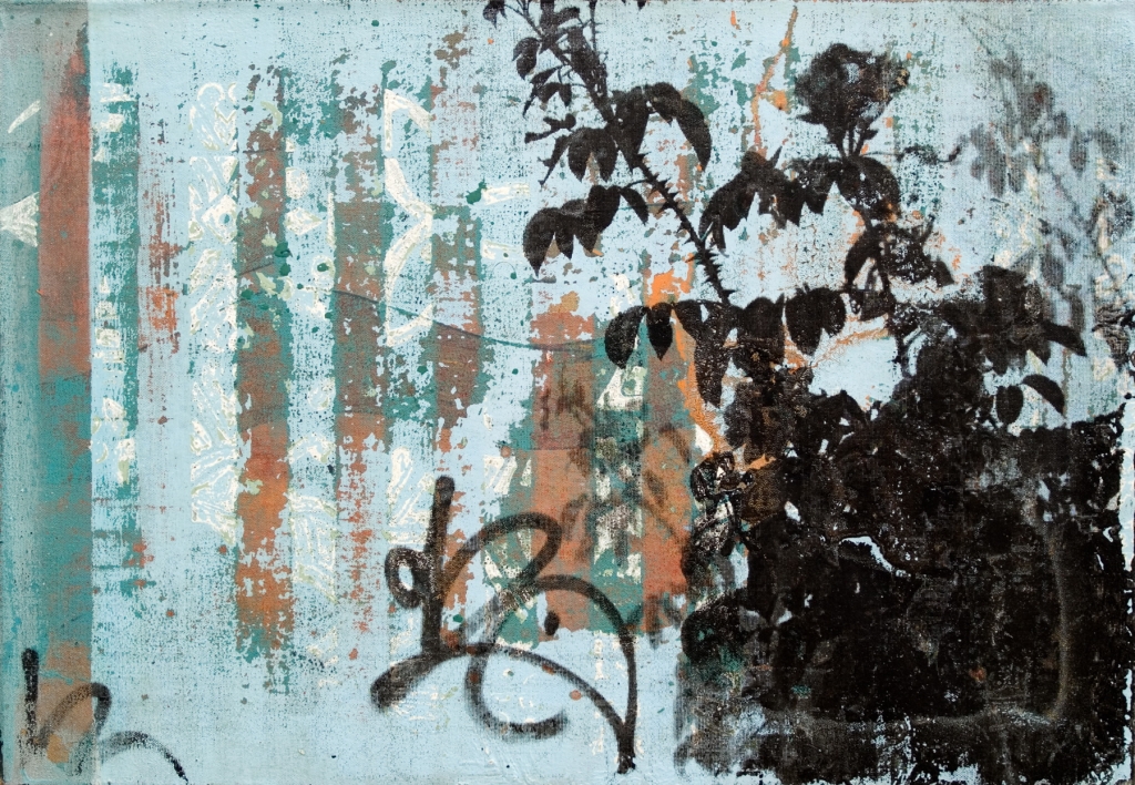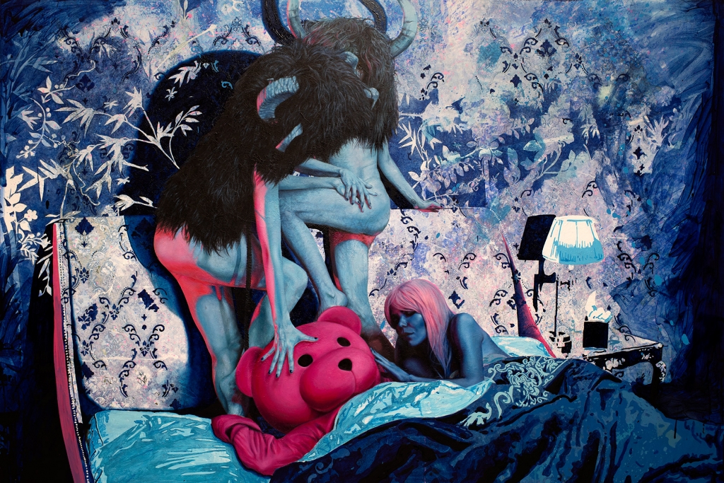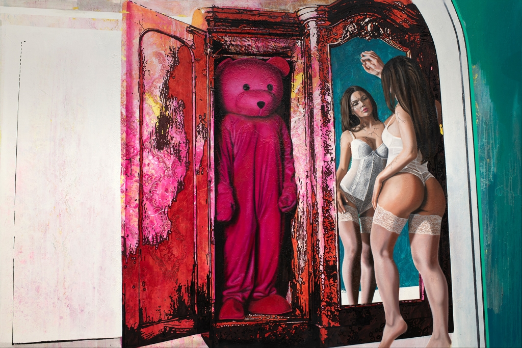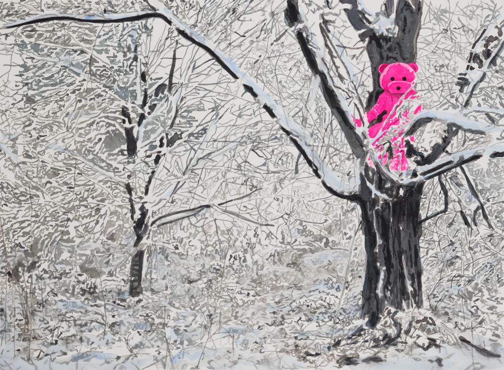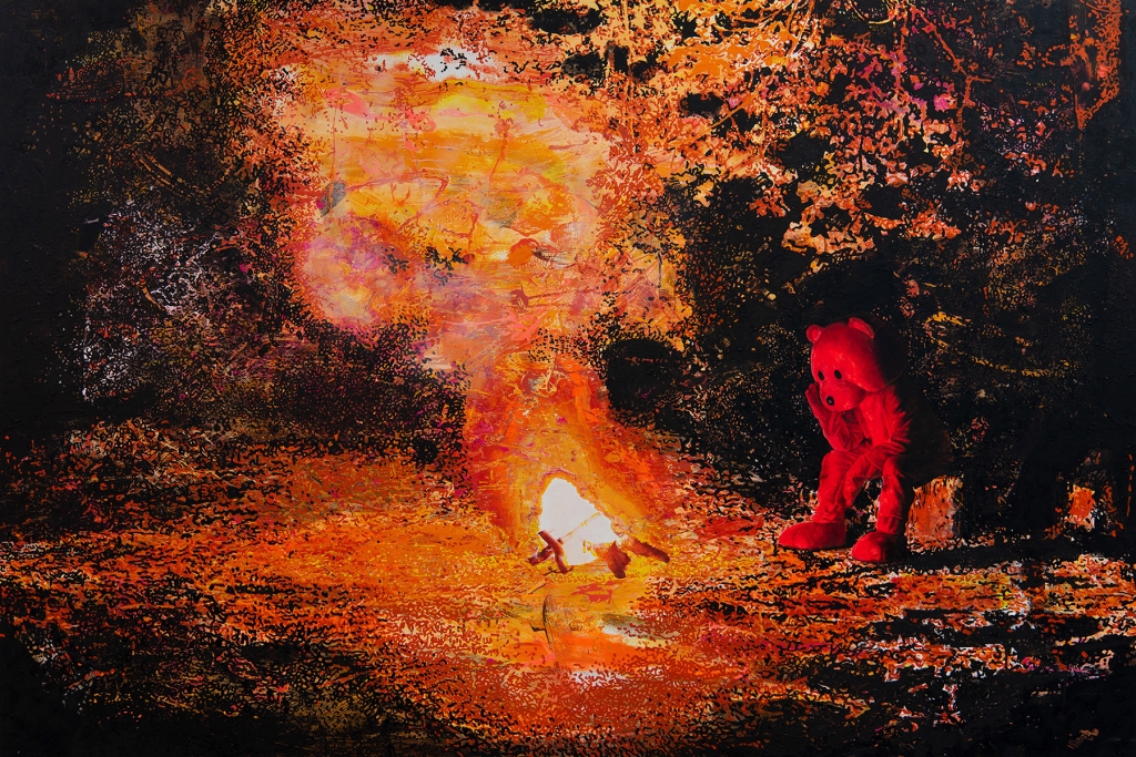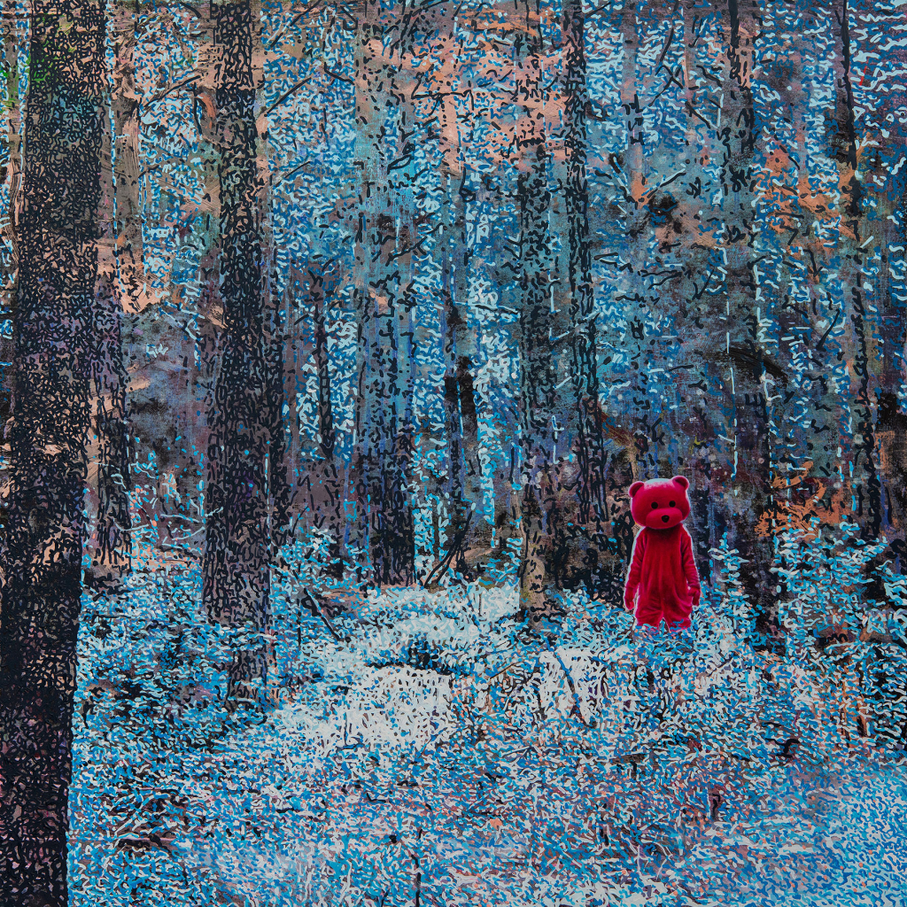 The Apple Tree - Pink Bear mixed media painting by Paul Robinson fine artist