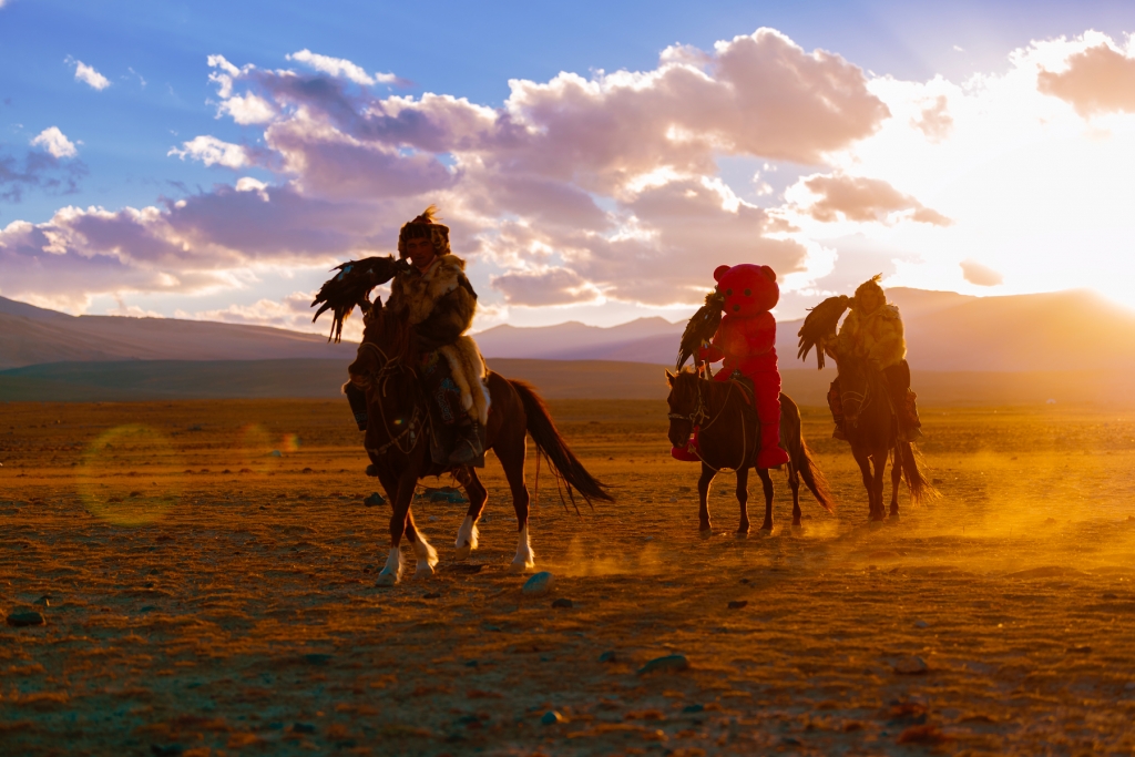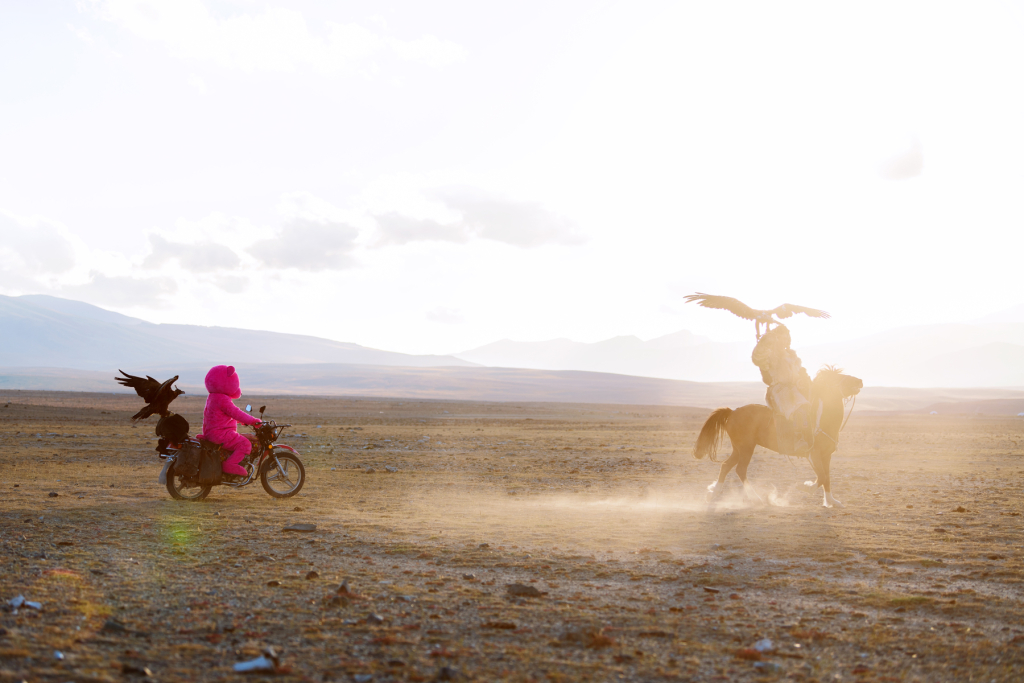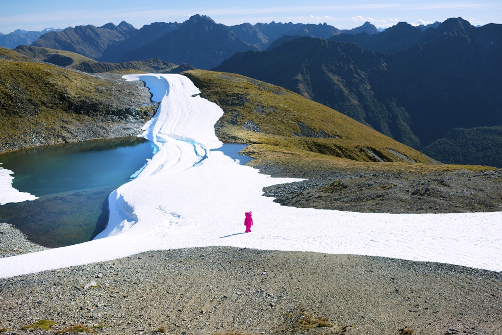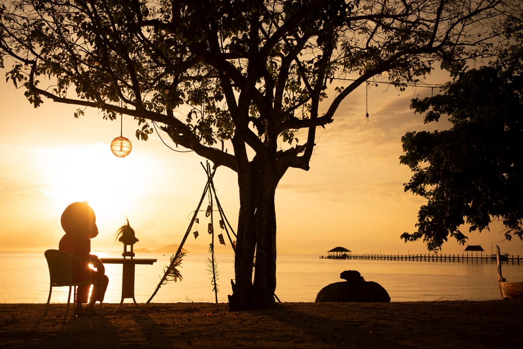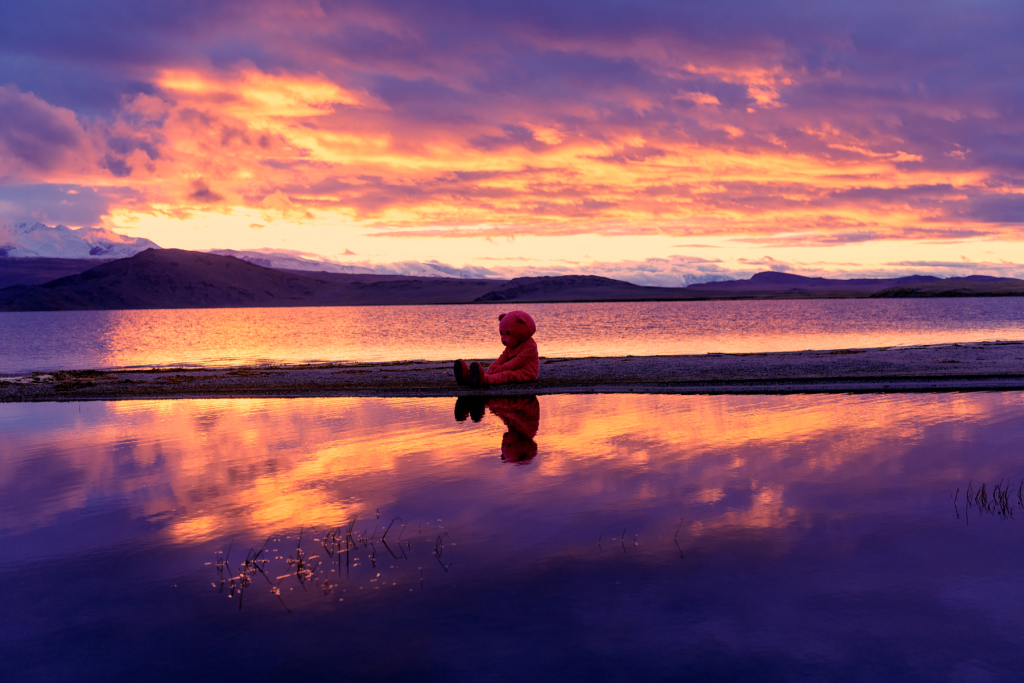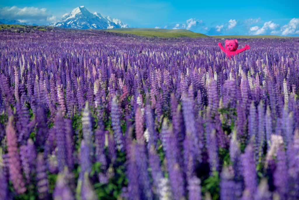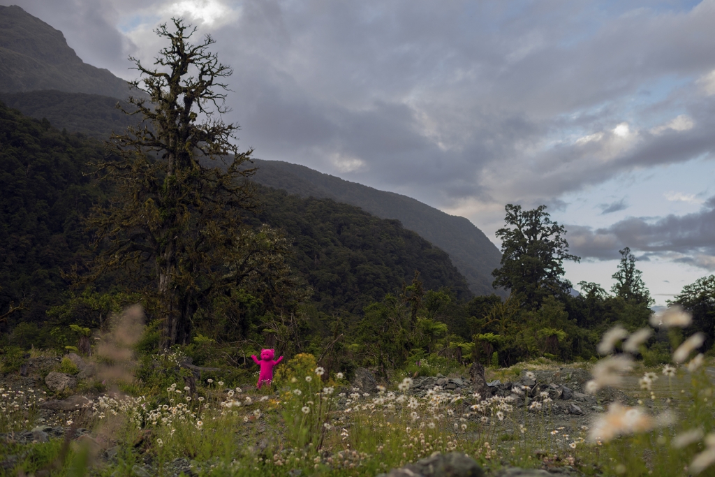 Swinging pink bear - Martina Velika poses in the fine art photograph as the pink bear.