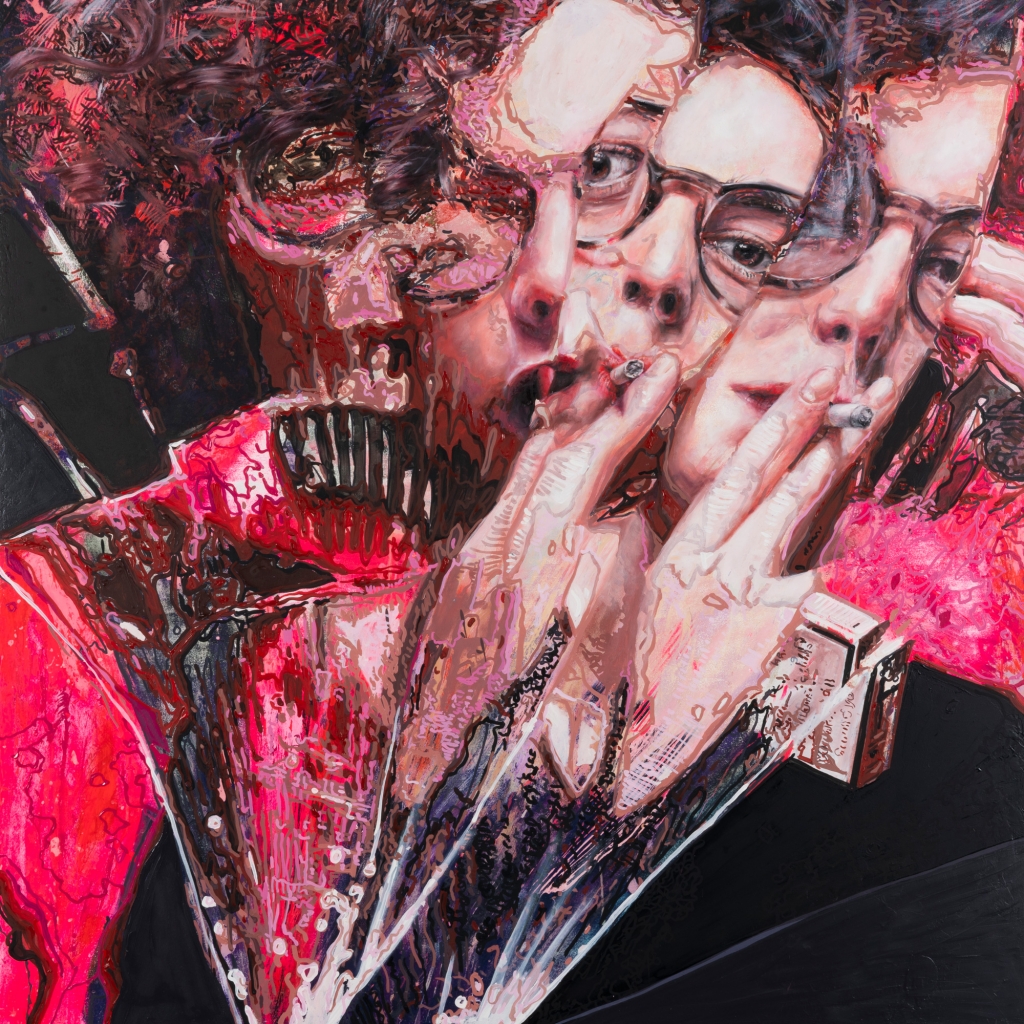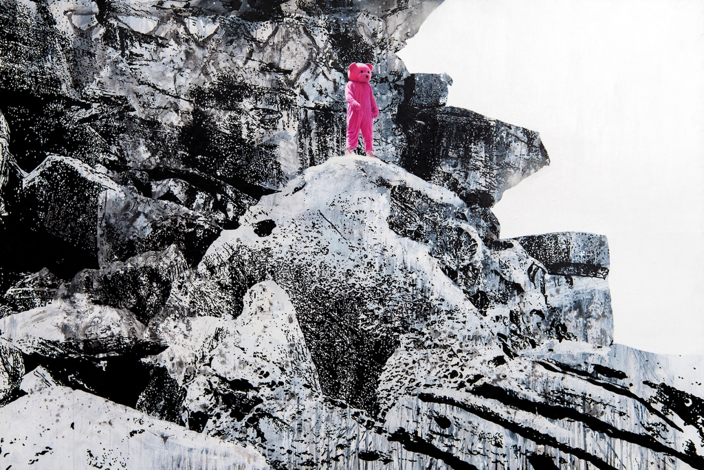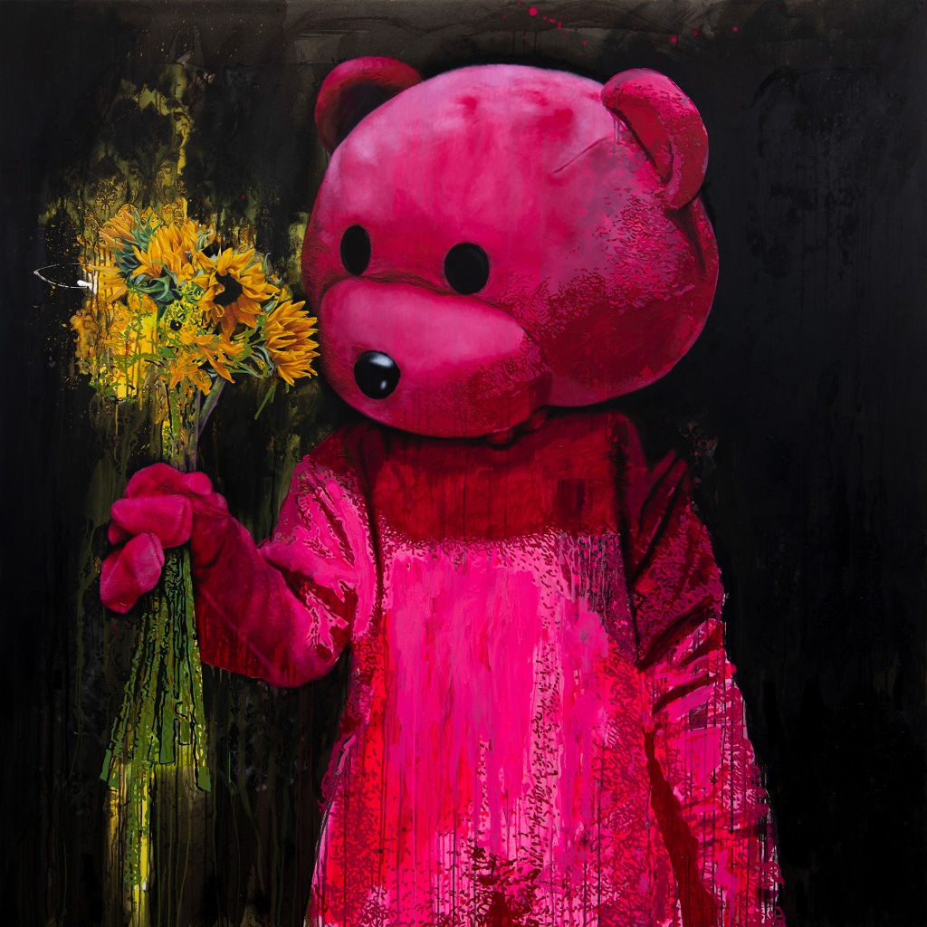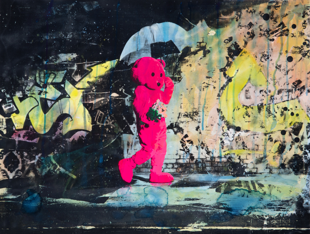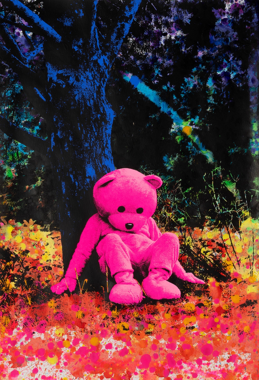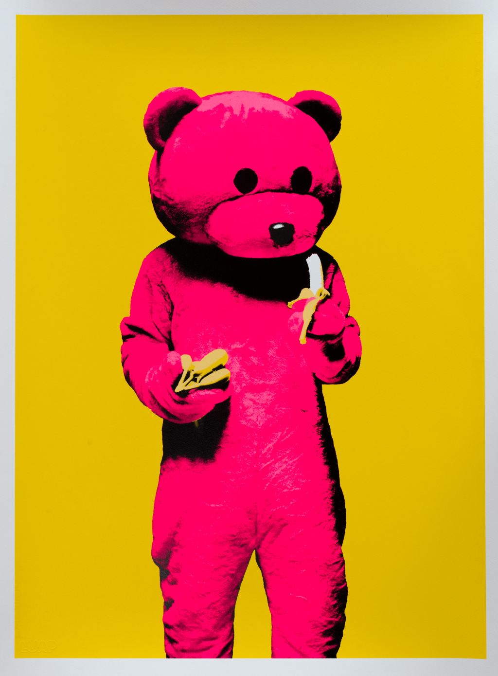Paul Robinson's Pink Bear Limited edition Screen Print featuring a skeleteton - Luap Studios - The work was selected by Cara Delevingne for #art4animals