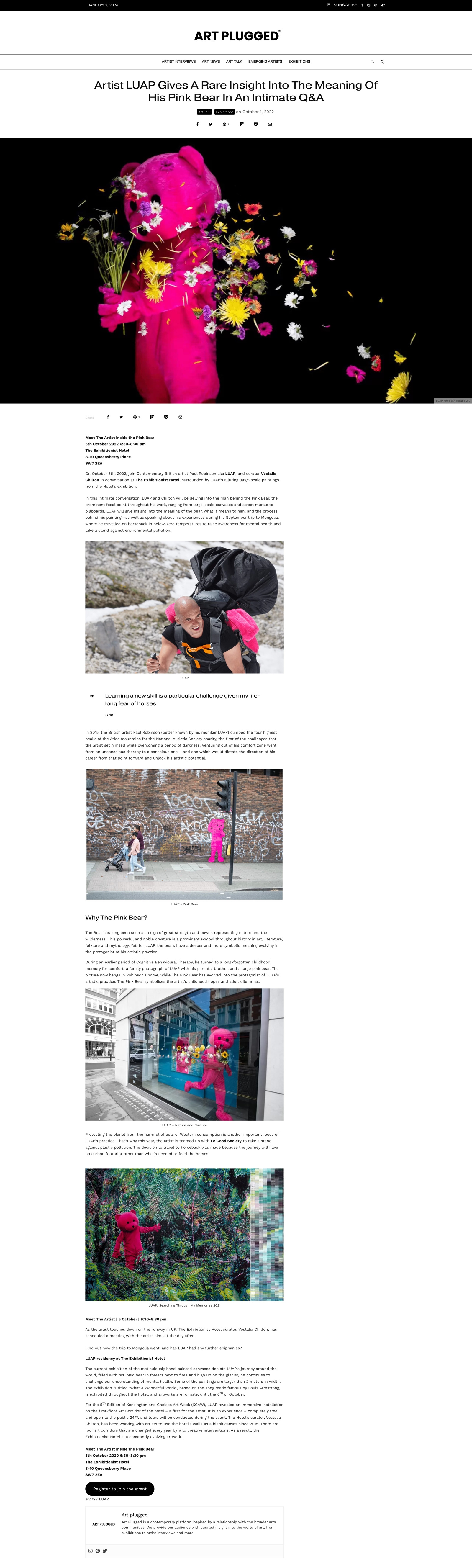 Art Plugged - Artist LUAP Gives A Rare Insight Into The Meaning Of His Pink Bear In An Intimate Q&A