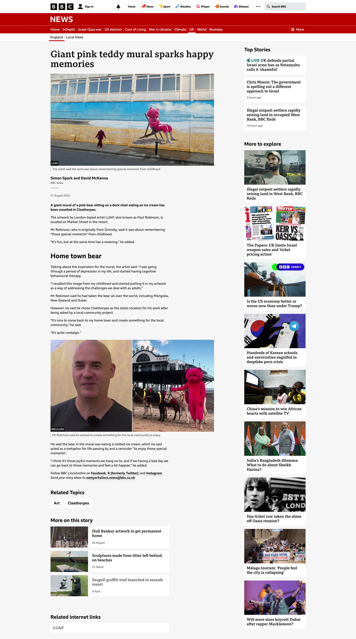 An article and interview on LUAP on the BBC An article and interview on LUAP on the BBC Read the article here More Press Pink Bear Mural Share Pinterest Twitter Facebook View 'The Pink Bear' project