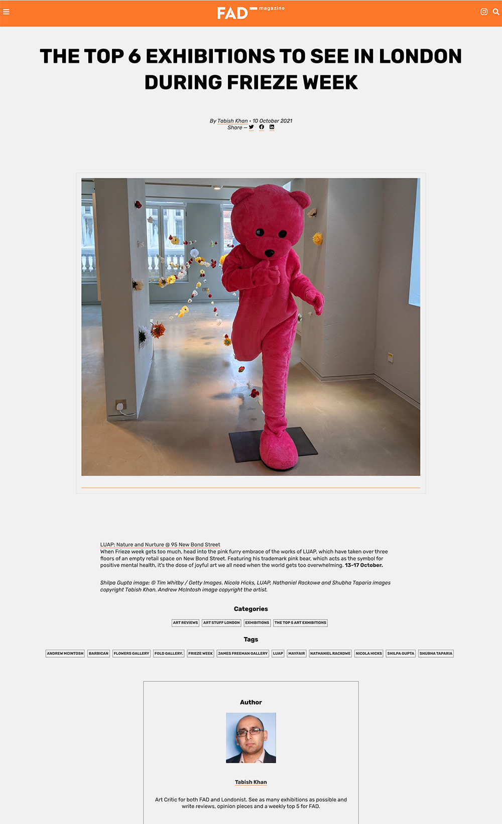 LUAP's solo exhbition at New Bond Street 'The Unconscious Therapy' is featured in FAD