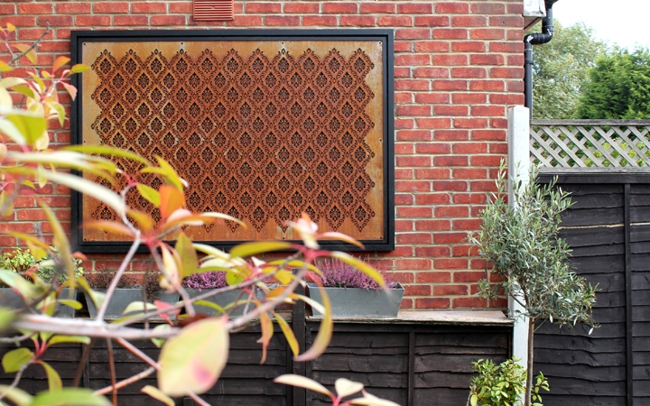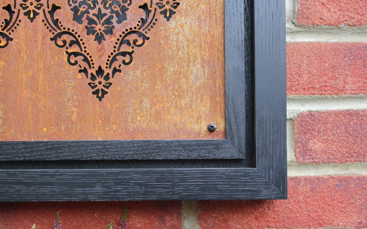 Our design team were delighted to be approached by contemporary artist Paul Robinson to produce our first ever frame purpose built to be displayed outdoors! This unique challenge was designed to house a metallic artwork entitled ‘Causality’, part of the artist’s ‘Decadence’ series which ‘examines and celebrates corroded patterned surfaces’.