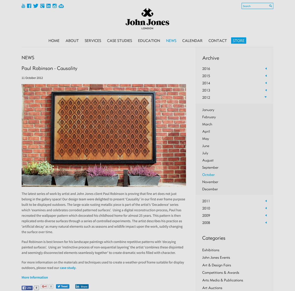 The outdoor framing for Causality was a first for fine art framers John Jones so they decided to do a featured article about the project.