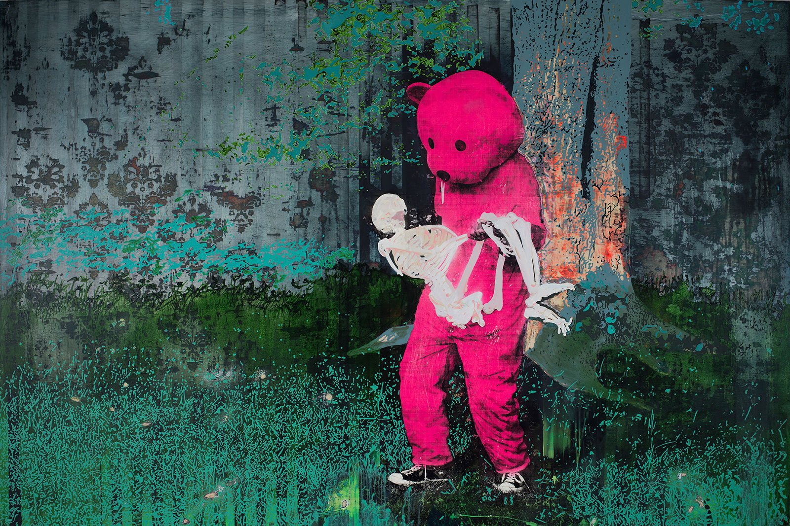 The Pink Bear’s first forages onto my canvas also took him through those dark forests, seeking love, coming across lonely, all too lost. It turns out he had to be lost first to be found, and so the figment of my childhood illuminated the darkness of my work with joy and warmth, cast as the protagonist of his story, and I of mine.